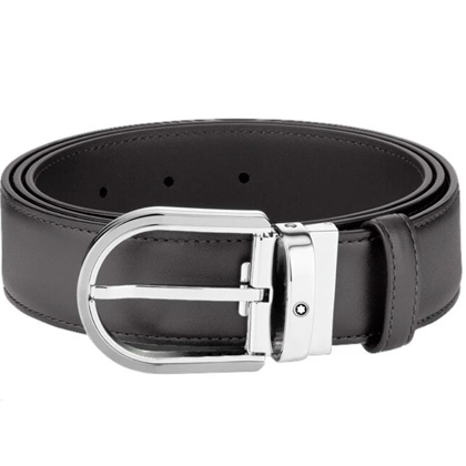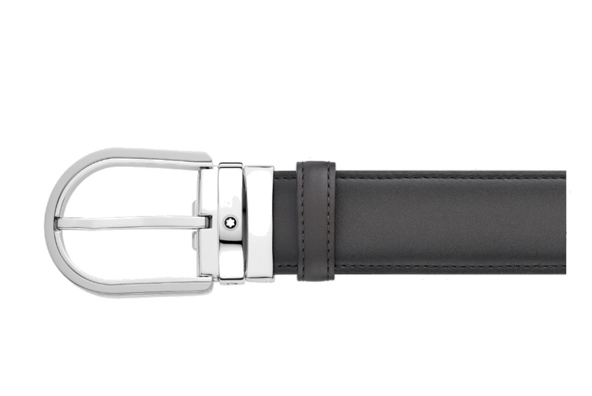Кожаный ремень с пряжкой в форме подковы серого цвета 35 мм от магазина премиальных ручек Premium Pens в Алматы.